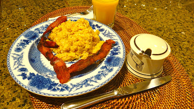 What we did: We followed this fairly simple recipe almost exactly as Fred designed it. Begin by cooking bacon in a heavy cast iron skillet. Once cooked, remove strips and cook rice in leftover grease, using a fork to separate the grains.